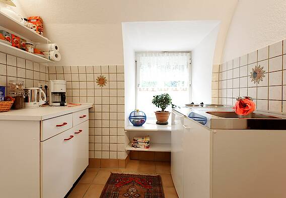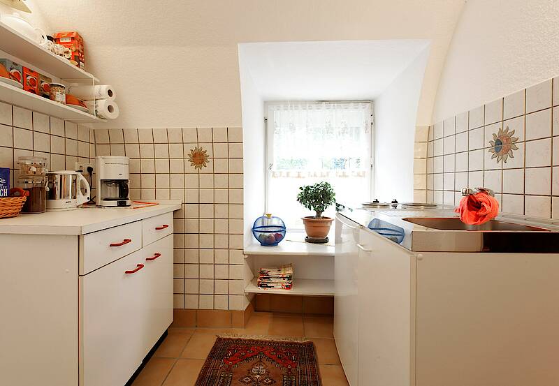 Klein aber fein, die Ferienwohnung im mediterranen Stil, mit Türhöhe 1,78m, bietet ein gemütliches und sonniges Ambiente. Vor der Wohnung erwartet Sie ein romantischer Freiplatz und Garten direkt bis zur Dreisam. Die Wohnung ist aufgeteilt in Flur mit Garderobenschrank, ein Wohnzimmer mit Essecke und SAT-TV, ein Schlafzimmer mit Doppelbett mit getrennten Matratzen, eine Kochnische mit Geschirr, Gläser, Kühlschrank, Kaffeemaschine, Wasserkocher, Herd mit 2 Kochplatten und Spüle, ein kleines Badezimmer mit Dusche/ WC/ Waschbecken und Föhn.
