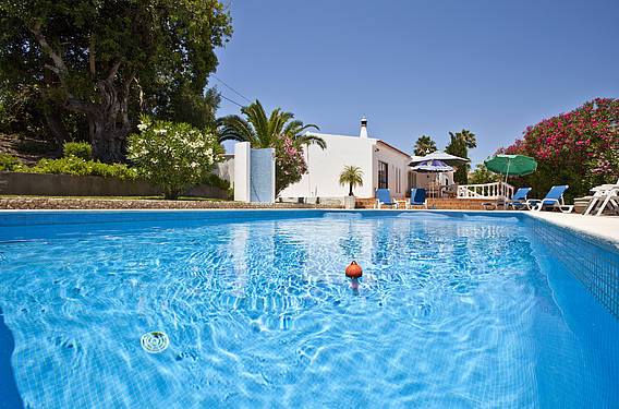 Very quiet fully detached private villa with pool, located on a 4.500 sq. 5eters plot of land with many waving palmtrees. Just for yourself! Only a few car-minutes away from the beautiful beaches Praia do Benagil, Praia do Carvalho, Praia do Carvoeiro and Praia da Marinha and close to the cities Lagoa, Carvoeiro and Portimao. Vila Maria offers ample space to a maximum of 5 persons (minimum age around 5) who will have at their disposal: