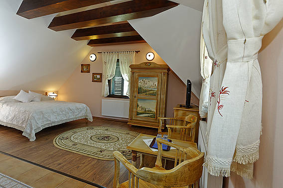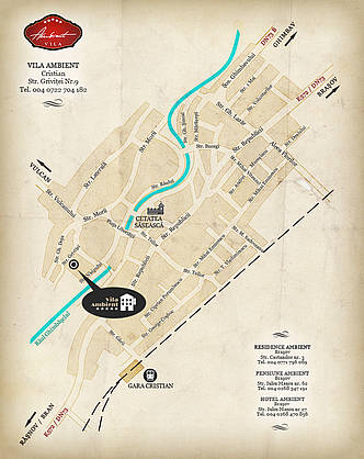 At the ground floor we have: BBQ, dancing floor / living / dinning with fireplace, LCD TV, DVD player, heated indoor swimming pool, sauna, jacuzzi, fully equipped kitchen. At the first floor we have a games room (snooker, table tennis), bar, LCD TV. All bedrooms are endowed with flat screen TVs and kingsize beds. Ideal for groups up to 12 persons. The recently restored private holiday Villa Ambient is a synonym for „treasure“. Tucked away in the heart of Cristian village, Ambient Villa 5* offers privacy and luxury with all the conveniences of a full service hotel. The magnificent villa was built over 2 centuries ago by the Saxons and it was fully restored in 2010.