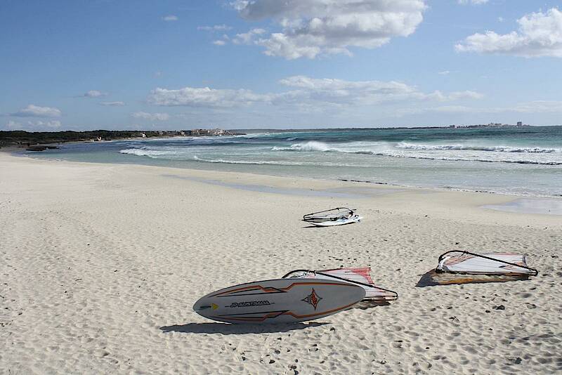 The sandy beach of Sa Rapita-Es Trenc, with its white sand and crystal-clear waters, begins at the marina of the quiet village of Sa Rápita.