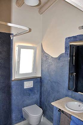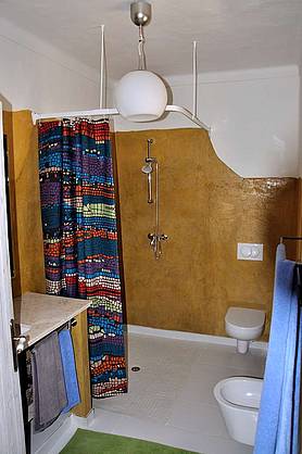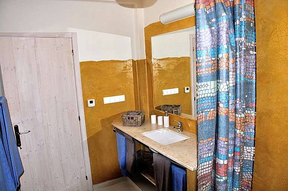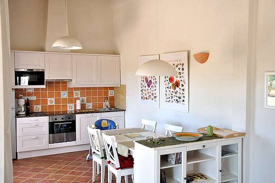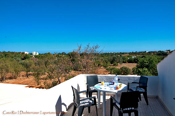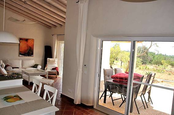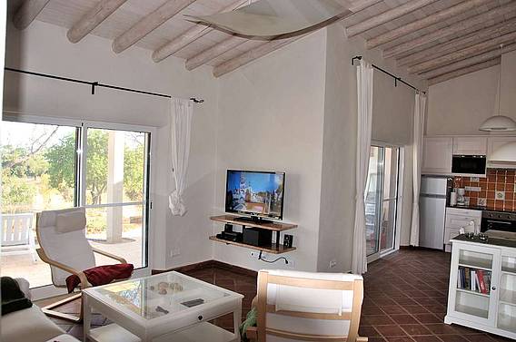 Das helle und freundliche Ferienapartment verfügt über eine große Süd- und Westterrasse sowie eine Dachterrasse. Beide Terrassen sind möbliert und bieten ein freien Blick über das herrliche Grundstück und die Landschaft. Dies ist ein Ort um die Seele baumeln zu lassen. Zwei Schlafzimmer, 2 Bäder eines en-suite, einen Komfortküche und ein großzügiger Wohn- und Essbereich auf circa 80 qm. Die Terrassen sind über große bodenstehende Terrassentüren zu erreichen und bilden gemeinsam mit den Innenräumen einen großen Zusammenhängenden Lebensraum. Fliegengittern, auch vor den großen Terrassentüren, sorgen dafür das die kleinen Plagegeister draußen bleiben und den Urlaubsgenuss nicht trüben. Der Traditioneller Kalk- und Kellenputz ist mit einer biologischen Lehmfarbe gestrichen. St. Catarina Terrakotta Fliesen verschiedener Formate bilden den Fußbodenbelag. Die Fließen werden in der nahen Umgebung (ca. 20 km entfernt) in traditioneller Weise gefertigt. Der Fußboden wurde mit einem biologischen Öl versiegelt.