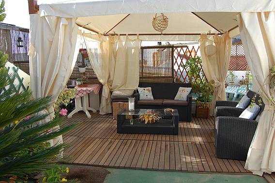 Terrace, Garden furniture, Sun beds, Barbecue |