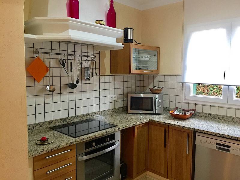The house belongs to a small group with only 7 houses that use a large pool area on a separate plot of land. There is a pool with approx. 8 x 14 meters, a shower, and a shady pool house with 50 square meters and about 400 square meters of sun terraces with couches.