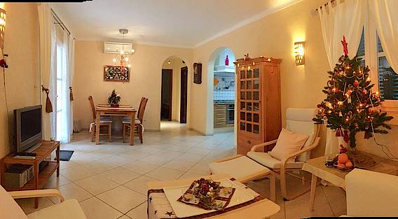 Air conditioning system and heating in rooms, safe, SAT TV, Radio/CD Player, dishwasher, a large refrigerator with separate freezer, kitchen, baking-oven, microwave oven, coffee machine, toaster, washing machine, iron, ironing board, garden grill, sun couches, bed linen, towels, table-ware cloths.....
