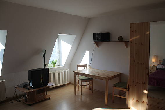 Hübsche preiswerte Ferienwohnung Das Appartement liegt zentral unweit der Innenstadt. Das helle Appartement ist 40 qm groß und ideal für zwei Gäste. Eine neue Küche mit Eßecke, Dusche, Flur und Wohn-Schlafbereich warten auf Sie.