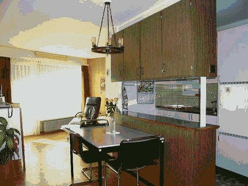 LIVING-ROOM: Cosy and comfortable. The two additional beds (pull out beds in living room) can be used as a sofa (proper beds, not sofa bed). TV, radio, telephone. Open KITCHEN with bar separation to the dining area.
