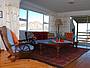 The living room on the first floor is spacious with sea and mountain views. A sliding door leads out to a covered balcony. Next to the living room is a separate TV room, bring your own decoder. The open-plan kitchen is neat and fully equipped (inc. dishwasher). The dining room has a large table and eight chairs. From the dining room you can walk through the sliding door to the built-in braai/ BBQ under roof. Next to it is an area to sit with teak table and chairs.