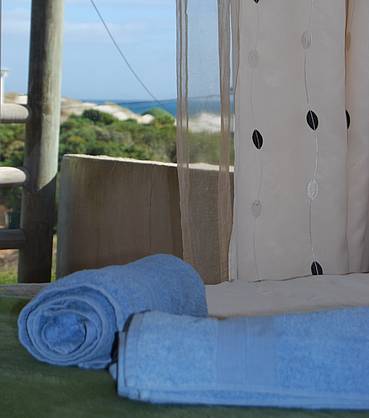 Fall asleep to the sound of the sea in the main bedroom and wake up to the beautiful surroundings. The main bedroom has a queen size bed, ceiling fan, sea and mountain views as well as a balcony. The spacious main bathroom has shower and bath. The two additional bedrooms on the bottom floor both have ceiling fans, sliding doors to stoep/veranda and two single beds each. Next to the bedrooms is a large bathroom with shower.