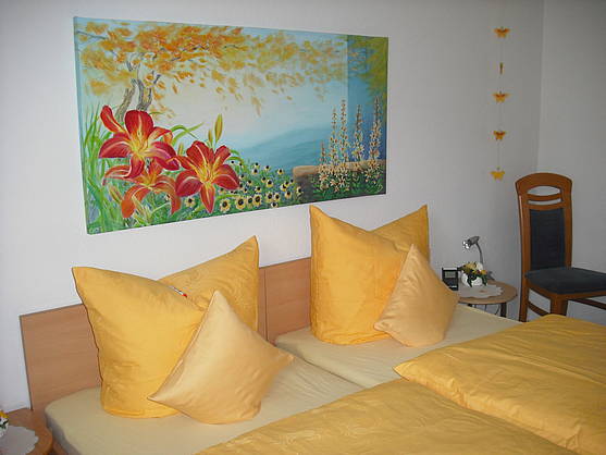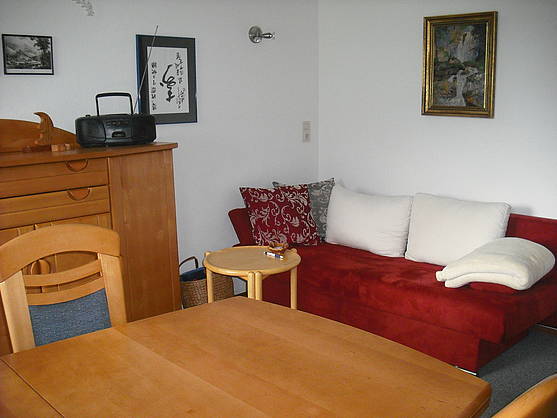 Unsere 2-Zimmer-Nichtraucher-Ferienwohnung liegt sonnig am Ortsrand (ca. 300 m zur Ortsmitte) und kann kleine Gruppen bis zu 3 Personen oder 2 Erw. / 2 Kinder beherbergen.