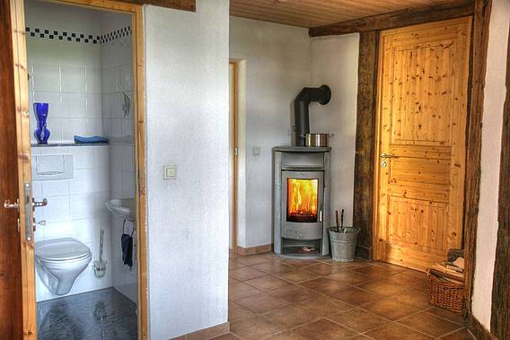 Massive oak beams, the warmth of the crackling fire in Heizkamin, a large front window overlooking the green and the Black Forest. Make it comfortable before, you relax in the hanging chair. Time to enjoy and relax..