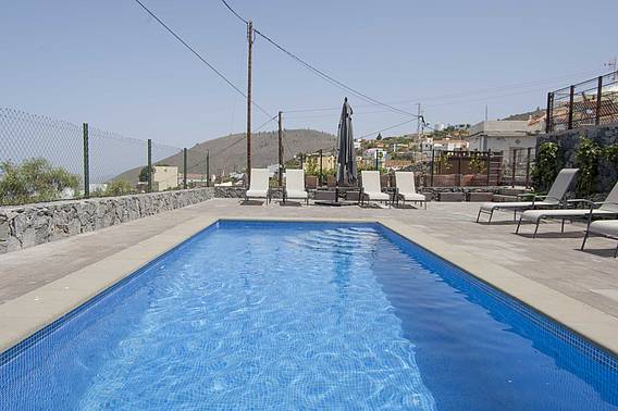 This rural house is composed of a beautiful living room with terrace and nice views over the swimming pool and the islands of la Gomera, El Hierro and La Palma.