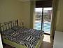 Das Haus bietet ein gemütliches Schlafzimmer mit einem Doppelbett. Auch ein Kinderbett steht Ihnen auf Wunsch zur Verfügung. Vom Fenster des Schlafzimmers können Sie den Blick auf den Pool und das Meer genießen.