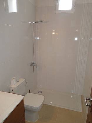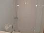 Das helle und neue Badezimmer hat eine moderne Dusche mit Glas-Abtrennung.