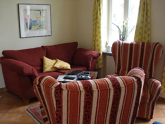Die Ferienwohnung hat ca. 55 qm, Wohnzimmer mit Essplatz, LCD-TV, DVD, Video, Radio/CDPlayer, große Loggia mit Küche und Essplatz, vollständig eingerichtet einchl. Geschirrspüler, Kaffeemaschine usw., Schlafzimmer mit Doppelbett, Sofa, TV, Radio/CD-Player, Wannenbad, Balkon, Bügeleisen, -brett, Münzwaschmaschine, -trockner, Fahrradabstellraum mit zwei Fahrrädern im Keller, Tiefgaragenstellplatz (Autohöhe bis 2 m) Kinderspielplatz im Garten, keine Haustiere, Nichtraucher.