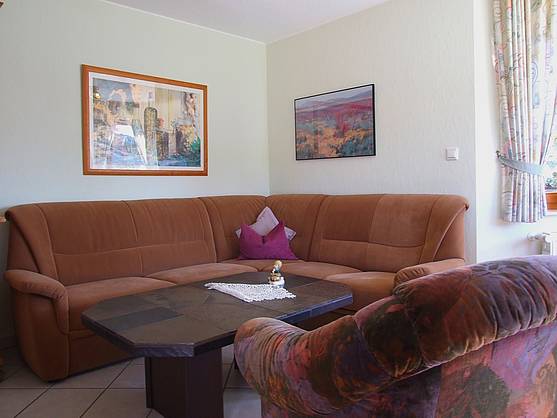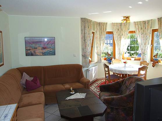 Bei unserem Haus handelt es sich um ein Einfamilienhaus mit Einliegerwohnung in ruhiger Südhanglage direkt am Waldrand gelegen und 5 Gehminuten entfernt zum Ortszentrum. Unter anderem vorhanden: Separater Eingang; Eckerker, überdachte Terrasse, Einbauküche, separates Schlafzimmer, Wohnschlafcouch für 2 Personen, Liegewiese und Kabel-Anschluß. kostenloses WLAN