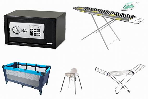 Heating, Air-conditioning, Safe, Cot, High chair, Bed-linen provided, Towels provided, Dishcloths provided |