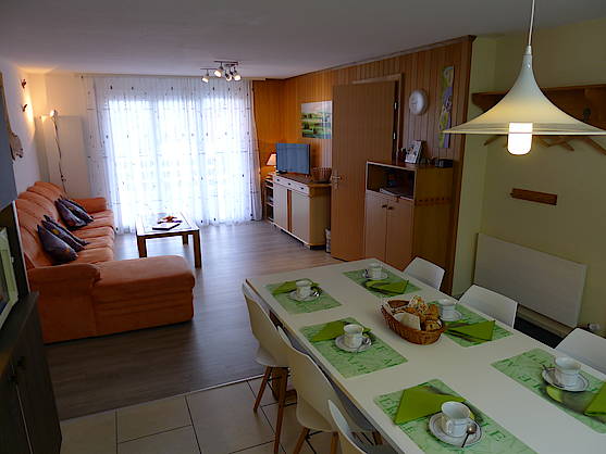 Die Wohnung ist im Erdgeschoss, ideal für Gehbehinderte (keine Stufen), grosse Terrasse und auch für Familien oder Gruppen bis 6 Pers. Bei mehr Platzbedarf könnte auch das angrenzende Studio Annex (mit Verbindungstür) dazugemietet werden (zus. insgesamt Platz für 8 Pers., 2 Toiletten, 2 x TV...) Herzlich Willkommen, wir freuen uns auf Sie!