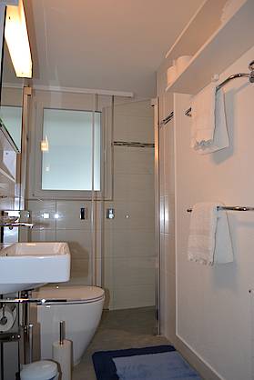 neu renovierte Wohnung (2018) im 1. Obergeschoss, sehr gut ausgestattete, offene Küche (Kaffeevollautomat, Geschirrspüler, Mikrowelle, Backofen, Kühlschrank, Tiefkühlschrank, Fondue- und Raclette-Set), Wohnzimmer mit Polstergruppe, TV, (Kabelfernsehen)CD/Video-Player, 1 Elternzimmer mit Doppelbett, 1 Zimmer mit 2 Einzelbetten, 1 Zimmer mit einem Raumsparbett (2 Betten untereinander schiebbar), Badzimmer mit ebenerdiger Dusche und WC mit Bidetbrause, im Kinderzimmer viele Spiele für Gross und Klein, grosser Balkon mit Seesicht