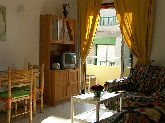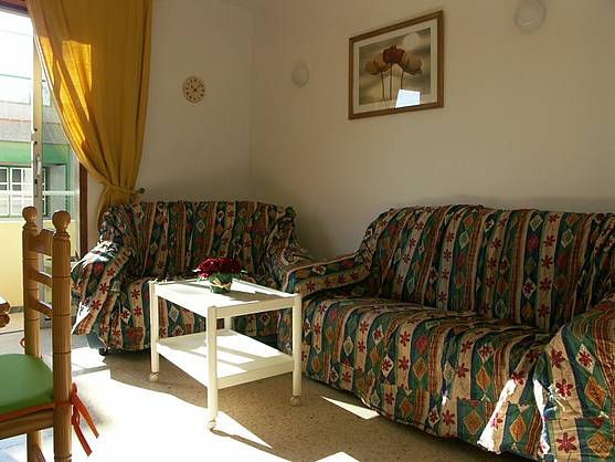 Auch die Plaza, wo fast immer irgendwelche Fiestas und Veranstaltungen statt finden, ist nur wenige Meter entfernt. Der Vorteil der zentralen Lage ist, das Supermärkte, Bäckereien, Metzgereien, Bars und Restaurants sowie auch die Post sich in unmittelbarer Nähe befinden und bequem zu Fuß erreicht werden können. Das Apartment hat einen Balkon und verfügt über ein Wohnzimmer mit Fernsehen mit Satelliten-Programmen. Die gut ausgestattete Küche bietet alles, was Sie zum täglichen Kochen brauchen. Die beiden Schlafzimmer bieten Platz für 4 Personen.