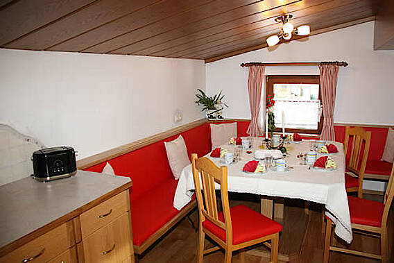 Komfortzimmer Zirbe (2-3 Personen) ohne Frühstück mit der Möglichkeit den Aufenthaltsraum dazu zu mieten oder nur die Frühstücksecke zu nutzen.