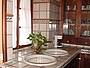 * Kitchen with dining table, oven, microwave, refrigerator, blender, coffee maker, toaster, blender, kettle, juicer, and egg boiler.