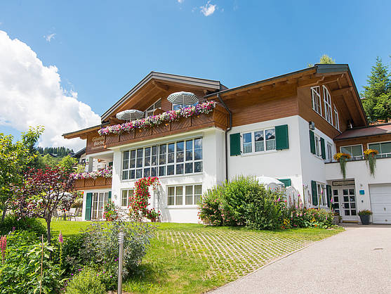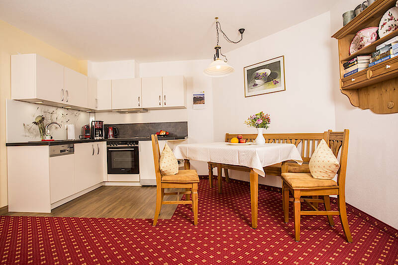 The apartments are furnished in a warm, high quality country house style. 60m2, bedroom, living room with sofa bed for two more persons, cosy dining corner with a kitchenette, bath and separate WC, hall. We also have apartments with separate kitchen, balcony or terrace. Awarded with 4 Edelweiss. Sat TV, Radio-CD player, telephone, Internet with modem available on request. Hair dryer. You can give yourself a feel-well treat in our Turkish Bath every day. Sauna-towels and cuddly bathrobes provided. Bread rolls service. Parking space; garage available on request for a set fee.