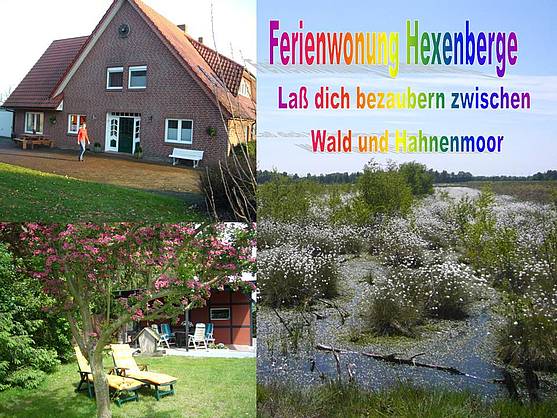 Holiday apartment "Die Hexenberge ****" (8+ pers.)* in a magnificent setting. Our holiday apartment (1 km from Dohren) bordering the Hahnenmoor is situated at the edge of a forest. It is particularly suited for all those seeking rest, for lovers of nature and cultural gems. On foot, canoeing or by bike?