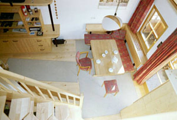 our modern eqipped flat is fully furnished and can be used from allergic people. Free view from sitting room up to the open roof, see two floors an have the impression of beeing in a cottage with all comfort. Well furnished kitchen. big balcony surround the house, own sauna helps relaxing. The flat is in a calm and sunny position, 1600 altitude without traffic noise. only for non-smokers without pets.