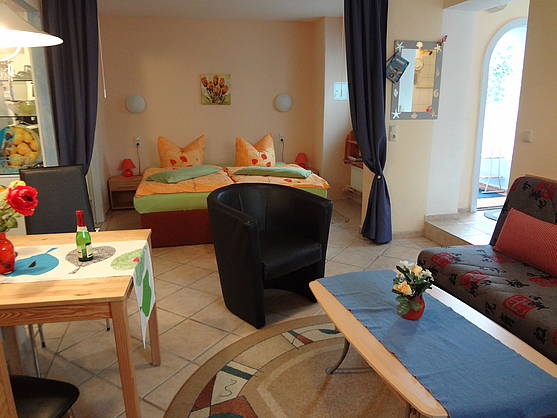 Das Appartement ist hell und freundlich eingerichtet. Auf etwa 40 m² bietet das 1-Raum-Appartement in seinem kombinierten Schlaf- und Wohnbereich Platz für bis zu 3 Personen. Für Ihren kurzen oder längeren Ostseeaufenthalt ist unser Ferien-Appartements mit einem Doppelbett und einer Sitzecke, die als Schlafsofa zur Aufbettung genutzt werden kann, ausgestattet. Zusätzlich beinhaltet unser strandnahes Appartements eine kleine, offene Pantry-Küche mit u.a. Kühlschrank, Mikrowelle, Toaster, Wasserkocher, Kaffemaschine und Eierkocher. Und auch für Sat -TV, Radio, Internetanschluss und WLAN ist gesorgt. Dusche und WC befinden sich im separierten Bereich. Preis pro Tag für 2 Personen für Bettwäsche, Handtücher, Strom, Wasser, Heizung. Parkplatz & Fahrräder sind kostenfrei !