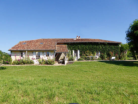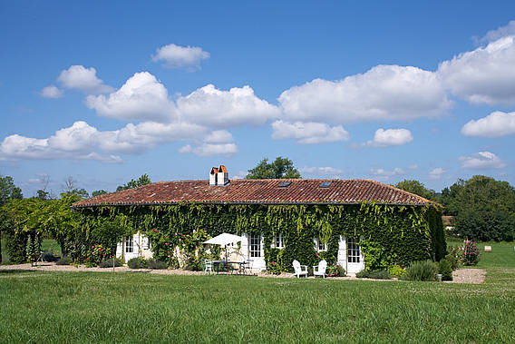 Das 2002 restaurierte, über eine Allee erreichbare Landhaus aus dem 18. Jahrhundert liegt auf einer Anhöhe mit weiter Aussicht auf die malerischen Flußlandschaften der Dronne. Das mit Wein und Rosen bewachsene Haus ist von drei Terrassen umgeben und besitzt ein 13 Meter langes Schwimmbad mit lichtdurchflutetem Poolhaus und grossen Sonnendecks.