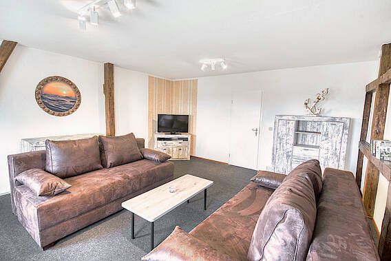 gemütliches Wohnzimmer (ca. 23 m²) mit zwei großen Federkern-Couchen