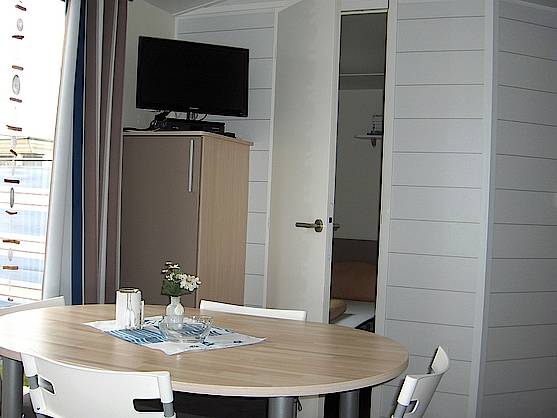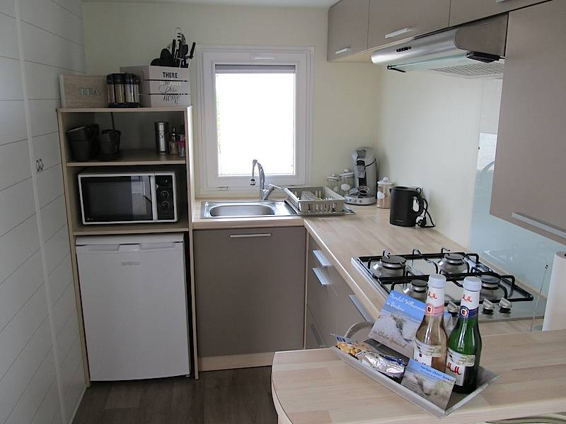 Unser Chalet hat einen offenen Wohn-Essbereich mit komplett ausgestatteter Küchenzeile, 2 Schlafzimmer, Dusche und WC. Zum Haus gehört ein eingezäunter kleiner Garten mit Terrasse und Gartenhaus. Unmittelbar neben unserem Chalet befindet sich der zugehörige Parkplatz. Ein weiterer Parkplatz unweit des Chalets, steht Ihnen ebenfalls kostenlos zur Verfügung.