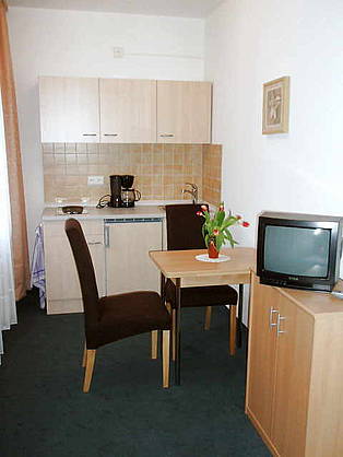 Die im März 2009 neu eingerichteten 1- und 2-Raum Apartments sind hell, freundlich und trotz der zentralen Lage ruhig. In nur wenigen Minuten erreichen Sie fußläufig alle berühmten Sehenswürdigkeiten der Stadt wie den Gendarmenmarkt, das Brandenburger Tor, den Reichstag, den Potsdamer Platz, den Alexanderplatz, die Museumsinsel und das Checkpoint Charlie Museum. Die Betten der Apartments können auch auseinander gestellt werden. Zur Ausstattung gehören Kabel-TV, Weckradio, teilweise Internetzugang, eine Einbauküche mit Kühlschrank, Kochfeld, Toaster, Wasserkocher und Kaffeemaschine. In der DU/WC befindet sich ein Fön. Handtücher und Bettwäsche sowie der regelmäßige Reinigungs- und Handtuchwechsel sind im Preis enthalten. Sie erhalten für die Zeit Ihres Aufenthaltes kostenlos eine Parkvignette (Der Normalpreis beträgt 2,- €/Stunde). Wir freuen uns, Sie bei uns zu begrüßen.