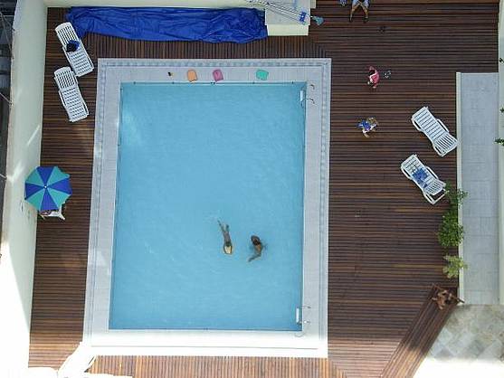 There are several lights on the upper pool terrace, nice seating and great views invite to relay and stay.