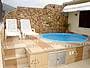 The pool is equipped with hydro massage and indirect lighting, the pool deck is a beautiful 3-colored tile floor, combined with a natural stone wall.