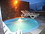 The pool is equipped with hydro massage and indirect lighting, the pool deck is a beautiful 3-colored tile floor, combined with a natural stone wall.