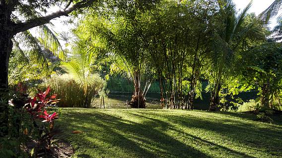 Sie sind in einer sicheren Anlage mit einem großen Garten voller Bäume, Blumen und Voegel untergebracht. Einem privilegiertem Ort einmalig am Strand in Salvador
