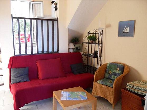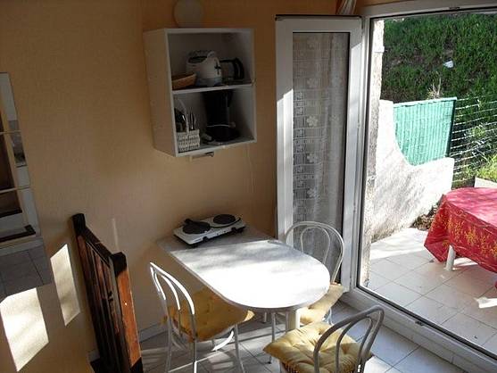 Das Ferienhaus hat in der oberen Etage ein Schlafzimmer mit einen Doppelbett, ein Bad und das WC. In der unteren Etage befindet sich das Wohnzimmer mit einer ausklappbaren Schlafcouch. Eine halbe Treppe höher ist eine offene Küche. Es gibt zwei Terrassen: Eine kleine hinter dem Haus und eine größere vor dem Haus mit einen wunderschönen Blick auf Grimaud. Im Untergeschoss befindet sich noch ein Studio oder eine Garage. Das Haus befindet sich auf einen Hügel mit Korkeichen und Pinien. Sie haben hier einen Tennisplatz und 3 Schwimmbäder die Sie kostenfrei benutzen können. Von hier aus sind es nur wenige km bis Saint Tropez, Grimaud, Port Grimaud und zu den verschiedenen Stränden. Westlich von St.-Tropez, kurz bevor die Küstenebene zu den Bergen des ‚ Massif des Maures’ ansteigt, liegt das Städtchen Cogolin, das etwa genauso viele Einwohner hat wie St- Tropez.