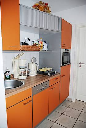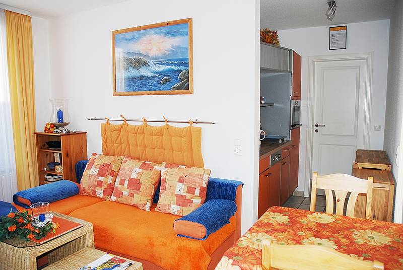 gemütliche kleine Ferienwohnung orange-blau für 2 Personen, strandnah & zentral, Nichtraucher, ebenerdig, haustierfrei